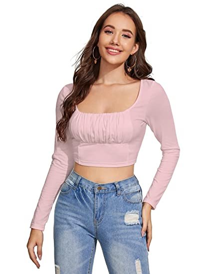 Shasmi Women’s Ruched Bust Solid Crop Tops for Women