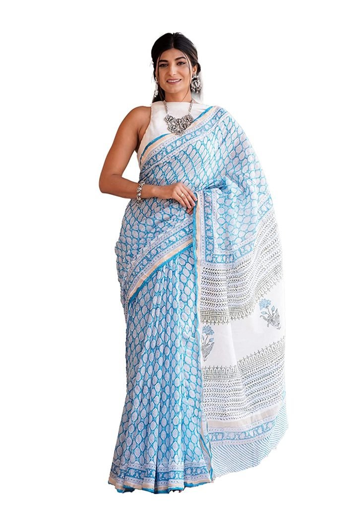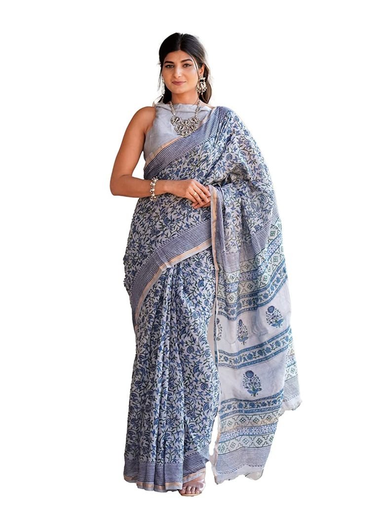 कॉटन चंदेरी हैंड ब्लॉक प्रिंटेड साड़ी ब्लाउज पीस के साथ मिल रहा है ये स्टाइलिस्ट कॉटन साड़ी सिंगल कलर में ही मिलेगी। साड़ी का कलर ग्रे स्लेटी है साथ ही ये साड़ी एथनिक इंडियन लुक देती है। ऐमज़ॉन पे साड़ी आपको बहुत ही कम दामों में मिल जाएगी जो की बहुत ही खूबसूरत है जिसे पहन कर आप भी बहुत सुंदर लगेंगी। इस साड़ी के साथ आप कुछ लेटेस्ट डिजाइन की ब्लाउज सिल्वा सकती है जिससे साड़ी का लुक और भी उभरेगा।