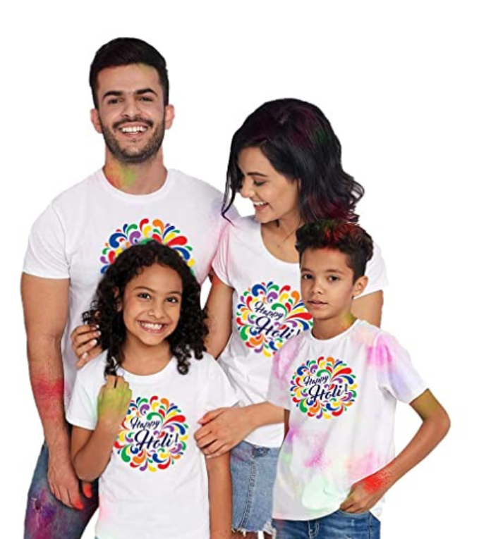यदि आप होली वाले दिन चाहती है सारे फॅमिली एक तरह के ड्रेस पहने तो ये टीशर्ट भी अच्छा ऑप्शन है। जिसे आप जीन्स के साथ भी पहन सकती है। ये ड्रेस कोड होली के दिन काफी अच्छा लगेगा।