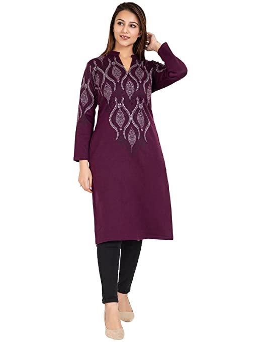 प्रिंटेड Woolen Long Straight Jacquard कुर्ती, आपको ऐमज़ॉन पे बहुत ही कम दाम में मिलेगी। ये कुर्ती Soft Premium Quality Wool फैब्रिक से बना है। बहुत ही Comfortably आप इसे पहन सकती है। यह वूलेन कुर्ती बहुत ही गर्म है। इसे आप कैज़ुअल, फेस्टिव occasions में भी पहन सकती है। इसेक 5 कलर उपलबध है। रेड, बैज, हॉटपिंक, एयरफोर्स, ग्रीन कलर मिल जायँगे।