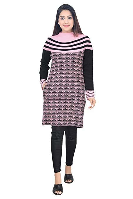 पिंक और ब्लैक कलर से बने इस वूलेन कुर्ती को इस तरह डिज़ाइन किया गया है कि इससे पहनने के बाद आप और भी स्टाइलिस्ट लगेंग। इसे आप डेली वियर, कॉलेज, और किसी फैमली फंक्शन में भी पहन सकते है। इसे आप Ankle लेंथ लेगिस, पेंट, पलाज़ो के साथ भी पहन सकती है। यदि आप फीटिंग वूलेन कुर्ती ट्राइ करना चाहती है तो ये एक अच्छा ऑप्शन होगा। वूलेन मेट्रिअल बहुत ही सॉफ्ट यूज किया गया है। यह पहनने में बहुत ही कम्फर्टेबले है।