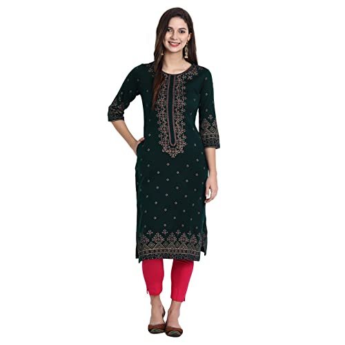 डार्क ग्रीन कलर के प्रिंटेड वूलेन कुर्ती पहनने में बहुत ही Comfortable और Soft है। इस आप कभी भी किसी भी Function, ऑफिस में यूज कर सकती है। यह कुर्ती ग्रीन कलर के अलावा आपको ब्लैक, टील, fuchsia (हल्का रानी कलर) में मिल जाएगी। ऑनलाइन यह आपको बहुत ही कम दाम में मिल सकता है। इसे आप क्रीम, पिंक, रेड, कलर के लेगिस के साथ पहन सकती  है।