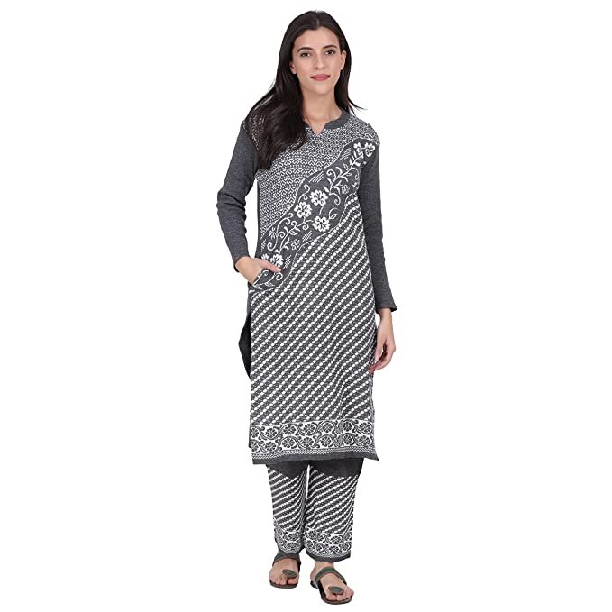 यह वूलेन कुरता के साथ आपको मैचिंग प्लाज़्ज़ो सेट भी मिल जाएगा। इसमें 4 कलर उपलब्ध है पर्पल, क्रीम, बैज, ग्रे कलर मिल जायँगे। आप इसे Comfortably कभी भी पहन सकते है। साथ ही इसे आप डेली यूज भी कर सकती है। फैब्रिक वूलन ब्लेंड का इस्तेमाल किया गया है। यह वूलेन कुर्ती Stretchable, Comfortable भी है। यह ठण्ड के लिए बेस्ट है। यदि आपको इस टाइप के सेट वाली वूलेन कुर्तियां पसंद है तो अमेज़न पे आपको बहुत ही कम कीमत में मिल जाएगी।